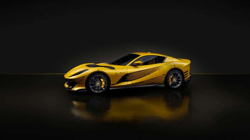 Η συγκεκριμένη 812 Competizione έχει βαφεί σε κίτρινο χρωματισμό Giallo Tristrato, με το αμάξωμα να παίζει τον ρόλο του καμβά, φιλοξενώντας τις ιδέες και τα σχέδια του Flavio Manzoni, επικεφαλής του τμήματος σχεδιασμού της εταιρείας. Έτσι, οι σημαντικότερες λεπτομέρειες που συνέβαλαν στη δημιουργία της 812 Competizione έχουν αποτυπωθεί πάνω στο αμάξωμά της σε απόχρωση DS Nero (μαύρο)