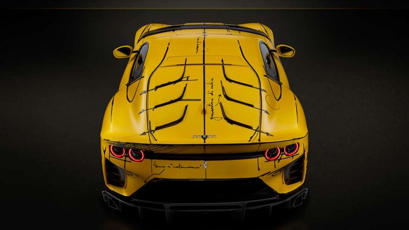 Η Ferrari εμπεύστηκε από τη διαδικασία δημιουργίας κάθε νέου μοντέλου. Σημειώσεις, σκίτσα και ιδέες σχεδιάστηκαν πάνω σε ένα κίτρινο χαρτόνι, βάζοντας τα θεμέλια για τη γέννηση αυτού του ιδιαίτερου οχήματος.