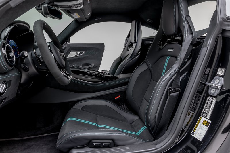 Περνώντας στην καμπίνα, βρίσκει κανείς τα ειδικής έκδοσης αγωνιστικά καθίσματα της P One Edition, τα οποία έχουν επενδυθεί με δέρμα σε μαύρο χρώμα και λεπτομέρειες από ύφασμα Alcantara και τιρκουάζ χρώμα.