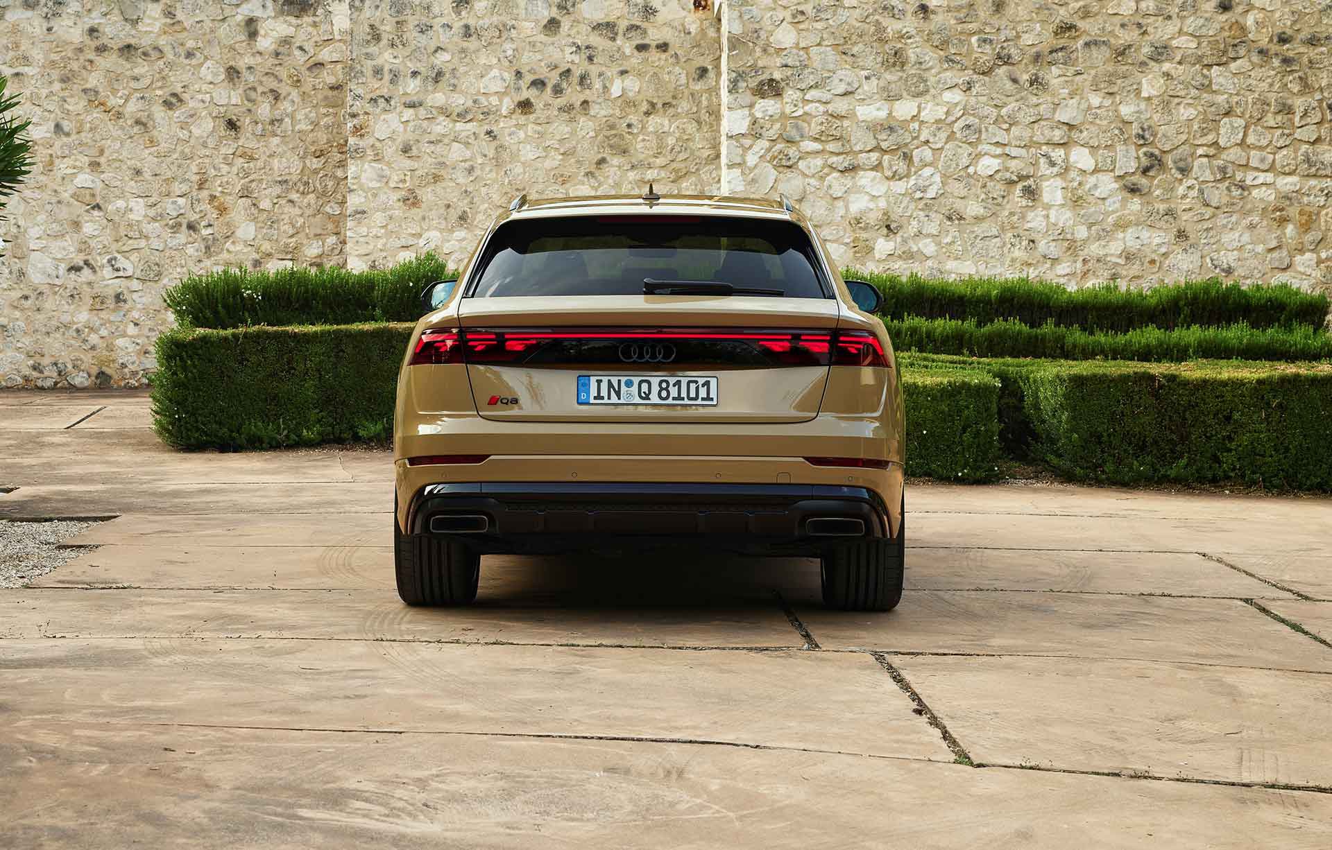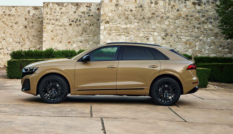 Στο εξωτερικό, οι νέες ποδιές εμπρός και πίσω υπογραμμίζουν τον ισχυρό χαρακτήρα του coupe SUV, ενώ για όσους θέλουν ακόμα περισσότερο σπορ στοιχεία μπορούν να τα «προσθέσουν» με το προαιρετικό πακέτο S line. Για πρώτη φορά, η Audi εφοδιάζει το Q8 με προβολείς HD Matrix LED, συμπεριλαμβανομένου ενός λέιζερ ως πρόσθετης μεγάλης σκάλας, που ενεργοποιείται από τα 70 km/h.