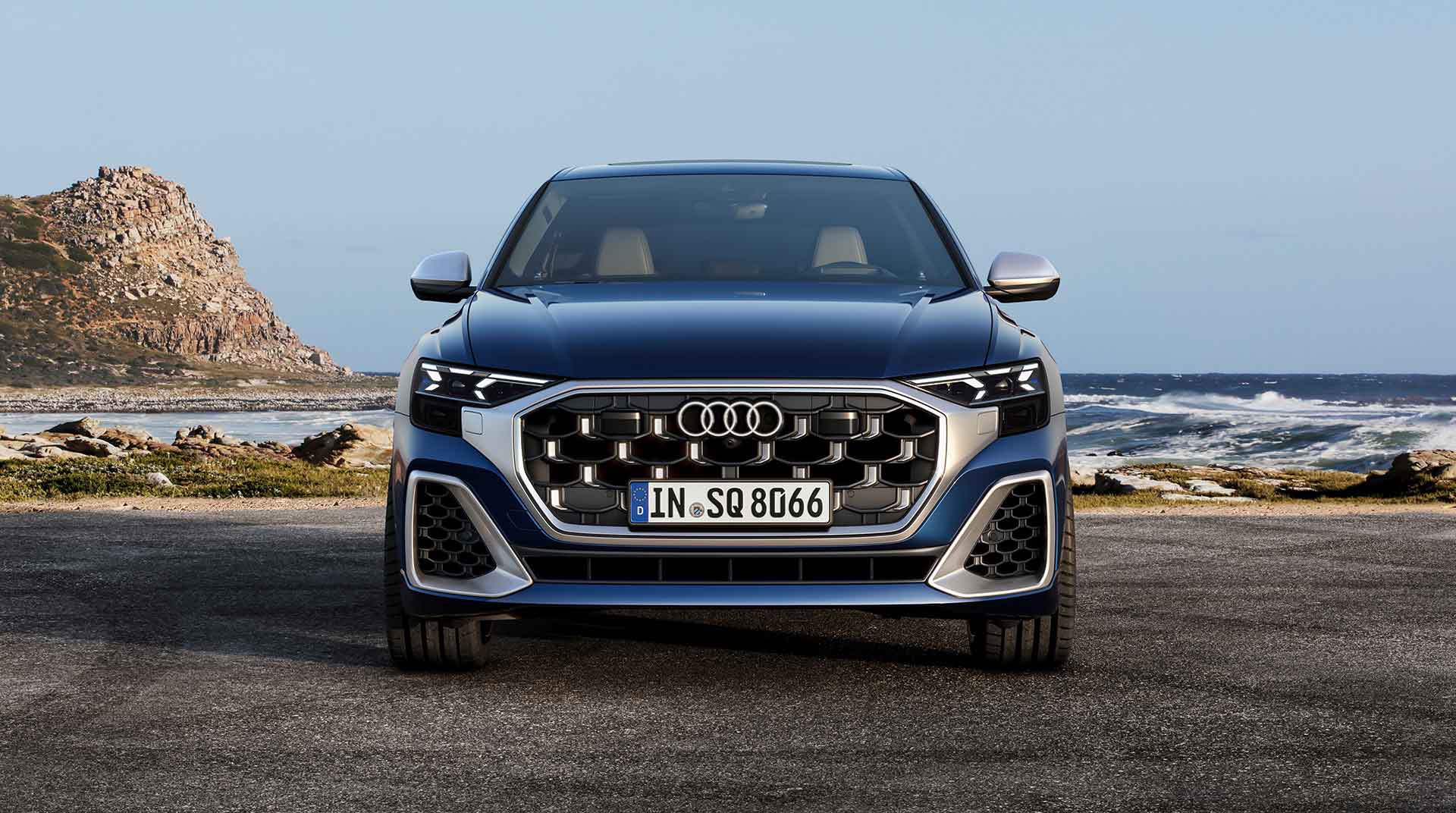 Στην κορυφή των εκδόσεων βρίσκεται το Audi SQ8 TFSI, με V8 κινητήρα βενζίνης και κορυφαίες επιδόσεις. Εξωτερικά έχει ακόμα πιο σπορ σχεδίαση, με επανασχεδιασμένο σπόιλερ στην εμπρός ποδιά, σπορ προστατευτικό στο κάτω μέρος και έναν «έντονο» διαχύτη στο πίσω μέρος.