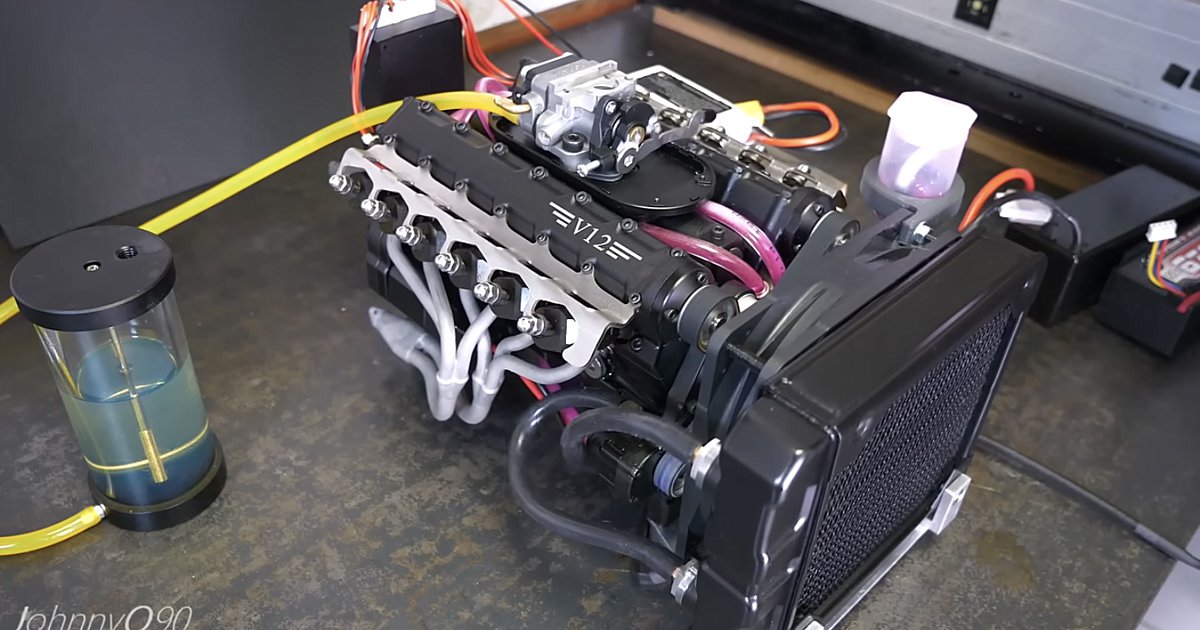 Ο μικροσκοπικός V12 έχει εξοπλιστεί με αντλία καυσίμου και εκκεντροφόρο άξονα με 24 βαλβίδες. Αυτό που εντυπωσιάζει περισσότερο είναι μάλλον το γεγονός ότι μπορεί να αγγίξει τις 11.500 rpm, και φυσικά ο ήχος που παράγει, θυμίζει αρκετά μονοθέσιο της Formula 1 από παλαιότερες εποχές.
