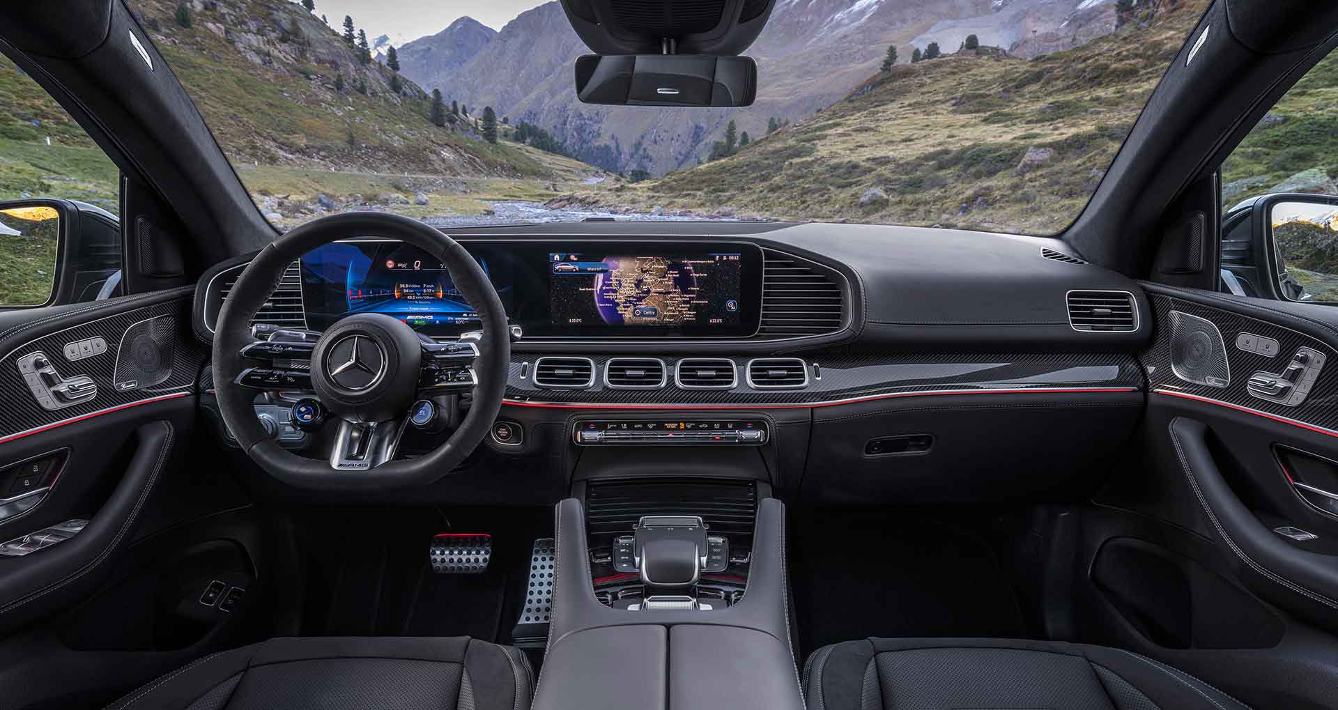 Υπάρχει επίσης η τελευταία γενιά του τιμονιού AMG performance, με στρογγυλά κουμπιά που ελέγχουν πολλές λειτουργίες, μεταξύ των οποίων και τα προγράμματα οδήγησης. Η στεφάνη του τιμονιού μπορεί να θερμανθεί προαιρετικά και μπορεί επίσης να παραγγελθεί σε carbon εμφάνιση. Στην Coupe έκδοση, συναντά κανείς, επιπλέον, λειτουργία επαυξημένης πραγματικότητας MBUX και προβολείς MULTIBEAM LED.