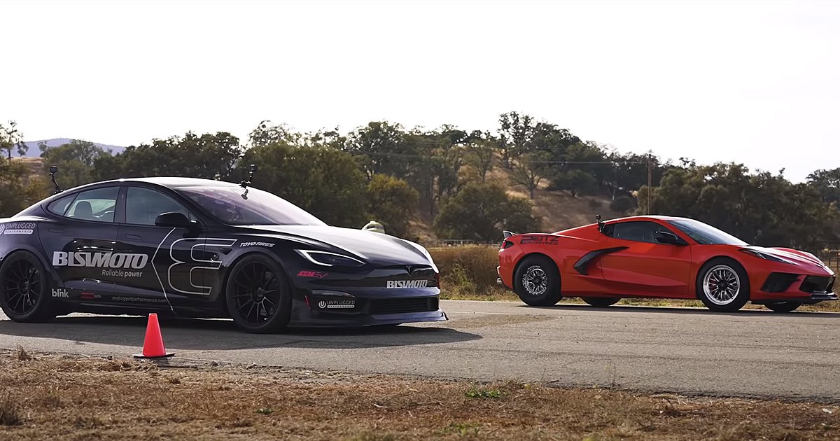 Μία Chevrolet Corvette C8 με σαφείς βελτιώσεις τα βάζει με το θηρίο των EV, το Tesla Model S Plaid.