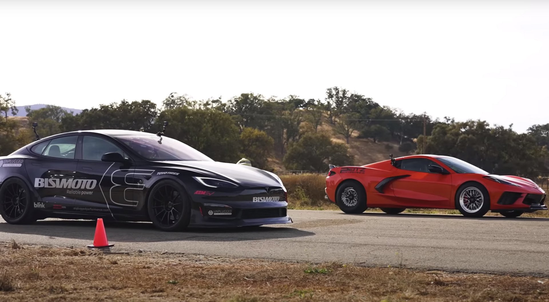 Μία «πειραγμένη» Corvette C8 παλεύει με το Tesla Model S Plaid στο 400άρι (video)