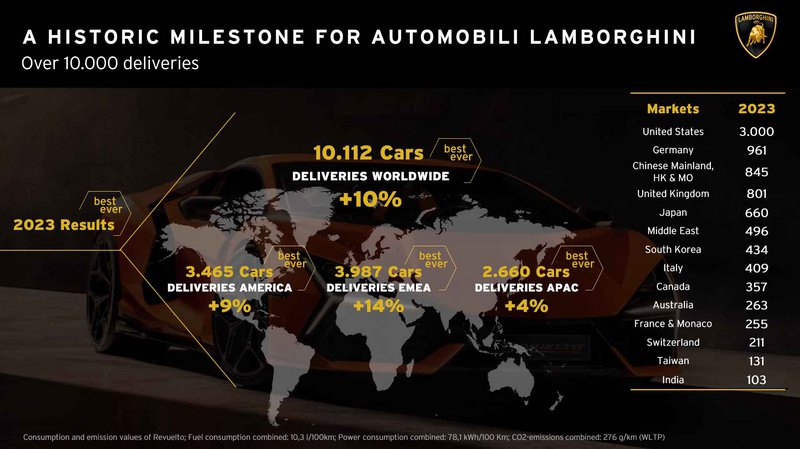Η Lamborghini είχε δείξει κατά τη διάρκεια του ιστορικού, για εκείνη, 2023, έτος στο οποίο συμπλήρωσε 60 χρόνια ζωής, ότι διάγει «χρυσές εποχές». Τα νούμερα των πωλήσεων «χτυπούσαν κόκκινο» και όλα έδειχναν ότι ο στόχος των 10.000 εντός του 12μήνου θα μπορούσε να επιτευχθεί. Όπερ και εγένετο!