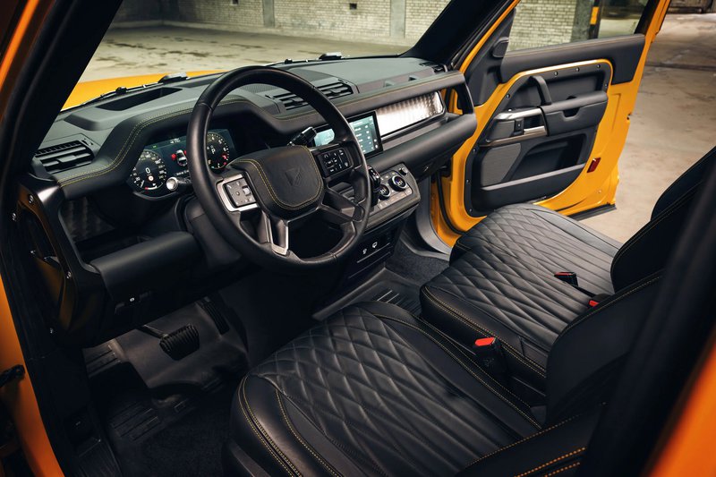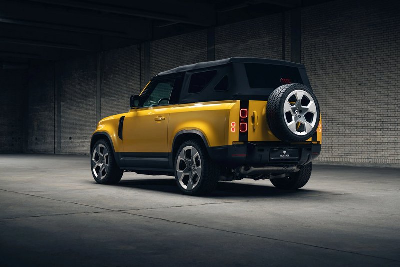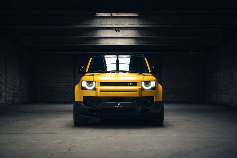 Το αυτοκίνητο πατάει πάνω σε νέες ζάντες αλουμινίου 22 ιντσών ενώ η Heritage Customs προσφέρει και ένα σετ με αυτοκόλλητα σε όσους επιθυμούν να «παίξουν» με την εξωτερική εμφάνιση. Παρεμβάσεις έχουν γίνει και στο εσωτερικό με δερμάτινες επιφάνειες και κίτρινες ραφές να συνθέτουν μια luxury εικόνα, όπως άλλωστε αρμόζει στο Land Rover Defender.