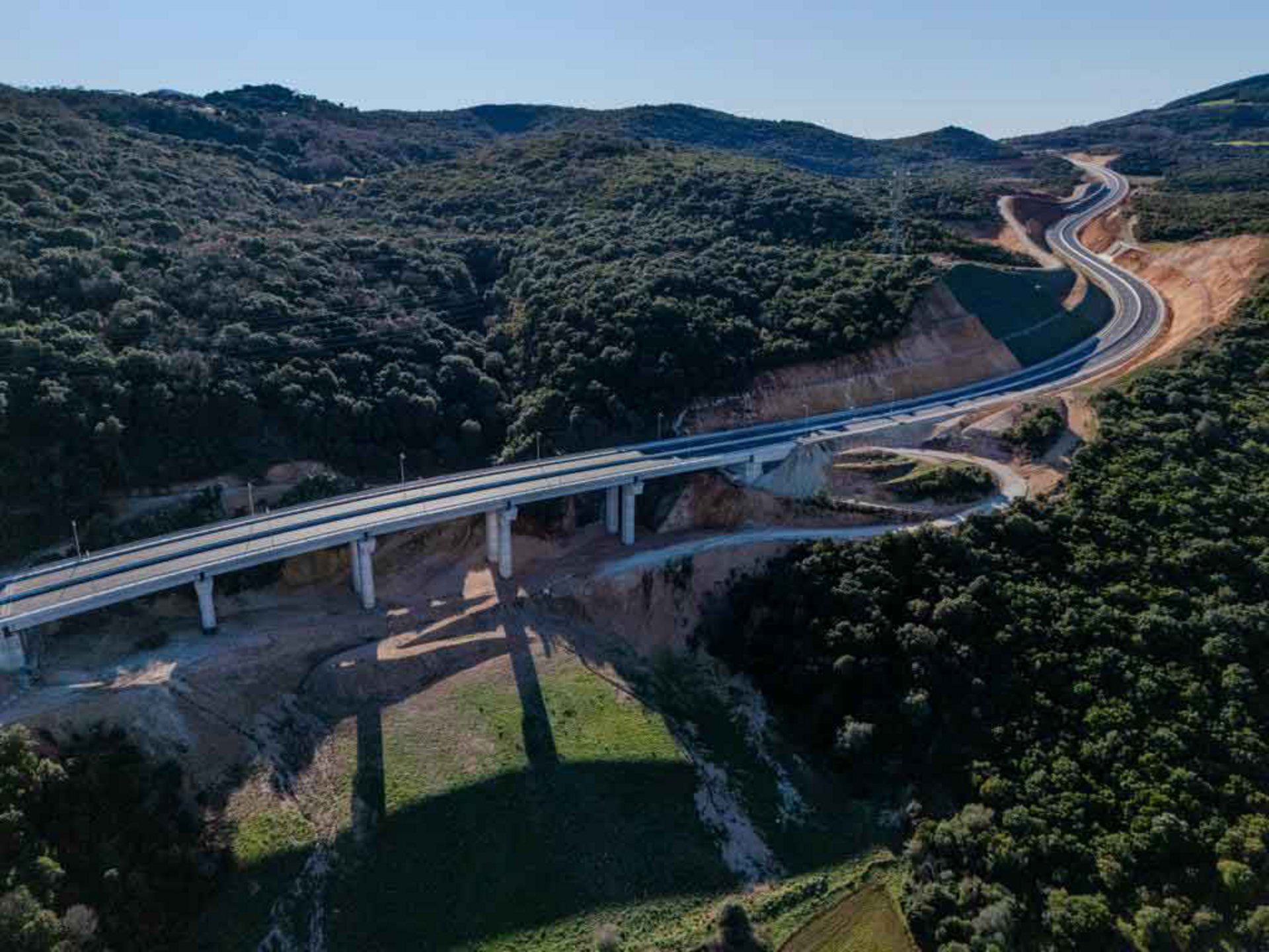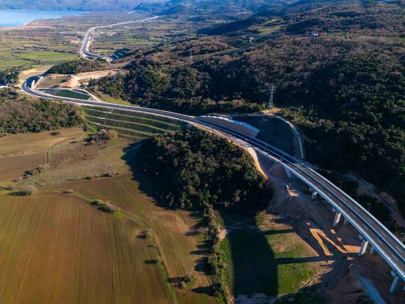 - Δύο μεγάλων κοιλαδογεφυρών περίπου 200 μέτρων εκάστη και τριών μικρότερων γεφυρών για ρέματα.