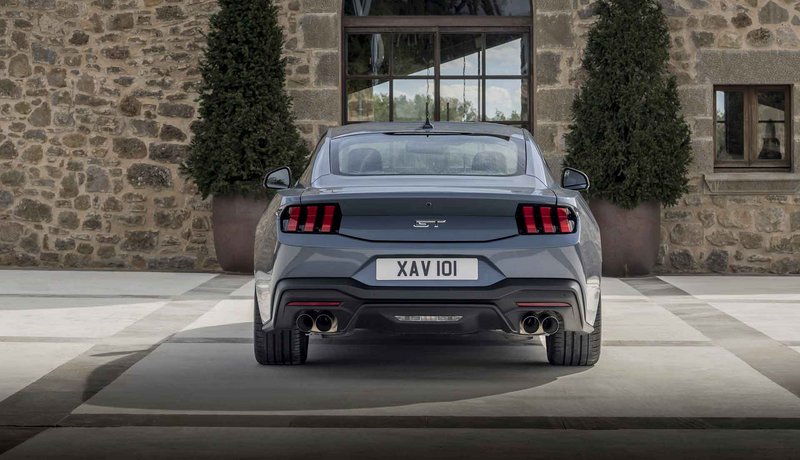 Στο μακρύ πίσω μέρος της νέας Ford Mustang φιλοξενούνται τα τολμηρά φωτιστικά σώματα του μοντέλου με τις χαρακτηριστικές τρεις μπάρες, καθώς και ένας επανασχεδιασμένος διαχύτης για βελτιωμένη αεροδυναμική ισορροπία.
