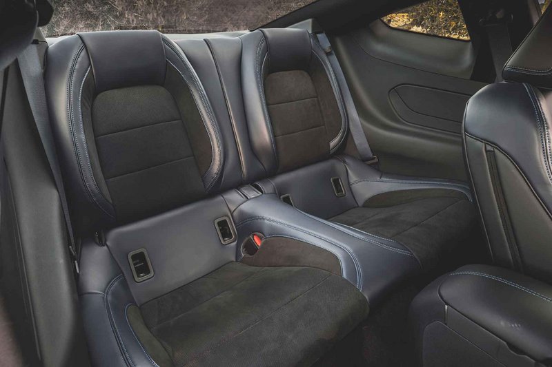 Για τα δερμάτινα καθίσματα, τα μαλακά σε αφή πλαστικά που βρίσκονται στον πίνακα οργάνων και τις επενδύσεις των θυρών, καθώς και  για το πλήρως δερμάτινο τιμόνι της νέας Mustang έχει αναπτυχθεί ένα νέο σαγρέ μοτίβο. Η νέα Mustang επωφελείται από τις έγχρωμες διακοσμητικές ραφές στο τιμόνι και το μοναδικό διάτρητο σχέδιο της ταπετσαρίας σε όλη την κεντρική κονσόλα, το οποίο συμπληρώνεται από χρωματικά ταιριαστές, ασύμμετρες διακοσμητικές ρίγες στις ζώνες ασφαλείας.