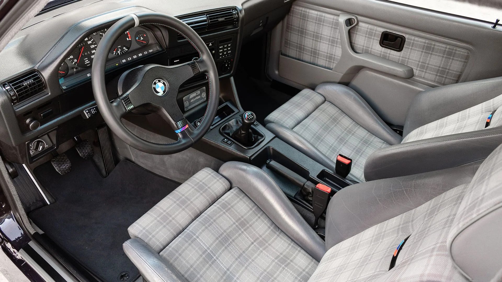 Συνολικά, η BMW E30 M3 Evolution II έχει διανύσει 177.583 km, όμως η κατάσταση τόσο του εξωτερικού, όσο και του εσωτερικού, που είναι ντυμένο με ύφασμα σε χρωματισμό Silver Uberkaro, είναι εξαιρετική.