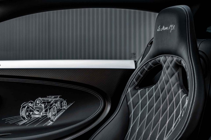 Η επιγραφή «Le Mans 1931» συναντάται μπροστά από το θόλο των πίσω τροχών και στο κάτω μέρος της πίσω πτέρυγας, μαζί με το σχέδιο της θρυλικής πίστας Circuit de la Sarthe. Ακόμα και το κάλυμμα του εμβληματικού W16 κινητήρα αποτελεί μια σχεδιαστική ωδή σε αυτό του ιστορικού μοντέλου, με παρόμοια κυκλικά σχέδια και φινίρισμα «Perlee» που παραπέμπουν στην Type 50S.