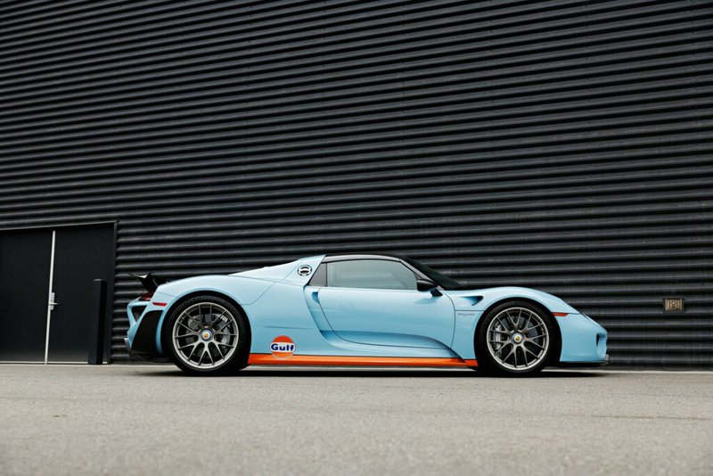 Πολλώ δε μάλλον όταν μιλάμε για το συγκεκριμένο παράδειγμα, που τίθεται σε δημοπρασία από το site της Gooding & Company. Είναι μόλις η μία από τις δύο 918 με χρωματισμούς της Gulf Oil, μίας εταιρείας που έχει γίνει γνωστή μέσω της συμμετοχής της στο motorsport εδώ και πέντε δεκαετίες, μεταξύ άλλων και με την Porsche.