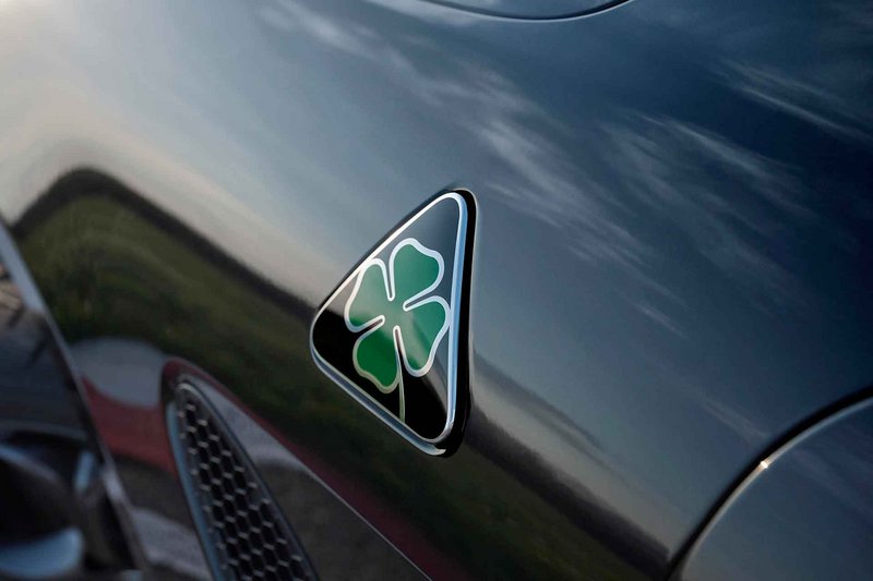 Για πρώτη φορά στα 100 χρόνια ιστορίας του Quadrifoglio, η νέα δημιουργία του Alfa Romeo Centro Stile αντικαθιστά το λευκό φόντο του τριγώνου που παραδοσιακά πλαισιώνει το τετράφυλλο τριφύλλι δίνει τη θέση του στο μαύρο χρώμα, που προσδίδει μεγαλύτερη στιβαρότητα και «ένταση» στο εμβληματικό σήμα.