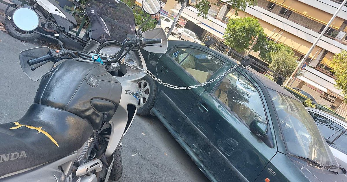 Μέσα σε αυτή την κατάσταση οι Έλληνες οδηγοί αναζητούν συνεχώς νέους τρόπους για να αποτρέψουν τους ληστές να βάλουν «χέρι» στα οχήματά τους. Σε μία από τις βόλτες μας στο κέντρο της Αθήνας, στην περιοχή του Ζωγράφου, πέσαμε πάνω σε μια περίεργη αντικλεπτική πατέντα.