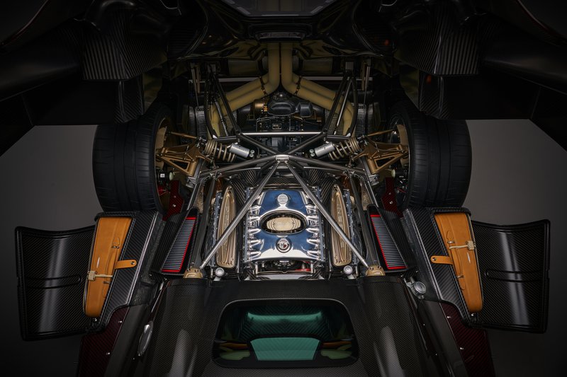 Η Pagani έχει επιλέξει τροχούς 21 ιντσών για το μπροστινό και 22 ιντσών για το πίσω μέρος, οι οποίοι συνοδεύονται από ελαστικά Pirelli P Zero Corsa Cyber. Αυτά είναι τα ελαστικά νέας τεχνολογίας της Pirelli που μπορούν να ανιχνεύουν διάφορα στοιχεία, όπως το ABS, και το traction control κι επικοινωνούν με το αυτοκίνητο, προκειμένου να εξασφαλίζεται μέγιστη απόδοση κι ακραίες επιδόσεις.