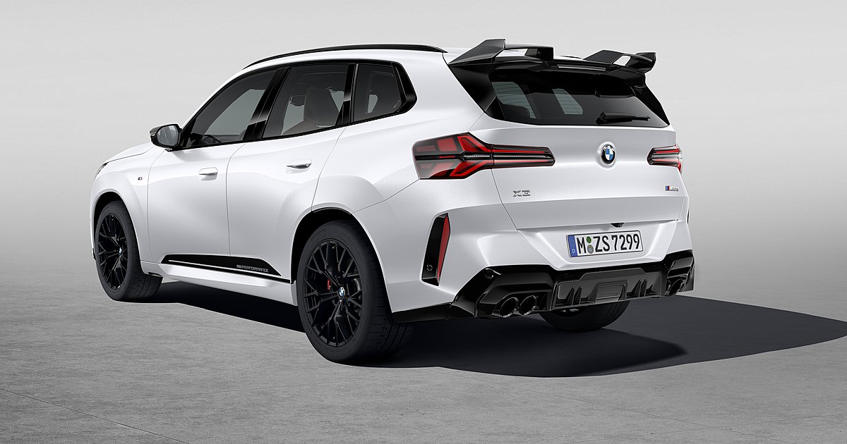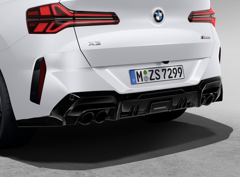 Τα πακέτα M Sport Package και M Sport Package Pro που παρουσίασε η BMW για το πολυτελές της crossover περιλαμβάνουν ένα σετ τεράστιων τροχών 22 ιντσών σε μαύρο ματ χρώμα, που παρά το μέγεθός τους, δεν «κλωτσάνε» και δένουν αρκετά αρμονικά με τη συνολική εμφάνιση του μοντέλου. Η X3 έχει δεχτεί επίσης μια μεγάλη αεροτομή στο πίσω μέρος, η οποία είναι κατασκευασμένη από πολυουρεθάνη.