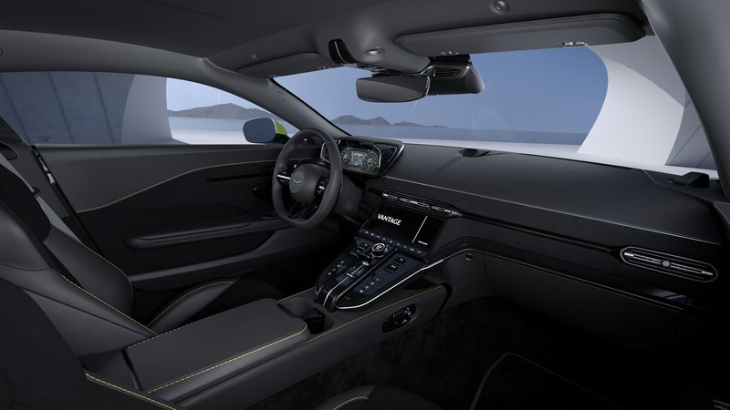 Στο εσωτερικό του αυτοκινήτου ξεχωρίζει στο μαρσπιέ της πόρτας το λογότυπο «Vantage AMV24», τα κεντημένα προσκέφαλα, το «Jewellery Pack» σε σκούρο χρώμιο και οι ραφές σε AMR Lime στα αεριζόμενα μαύρα σπορ καθίσματα.