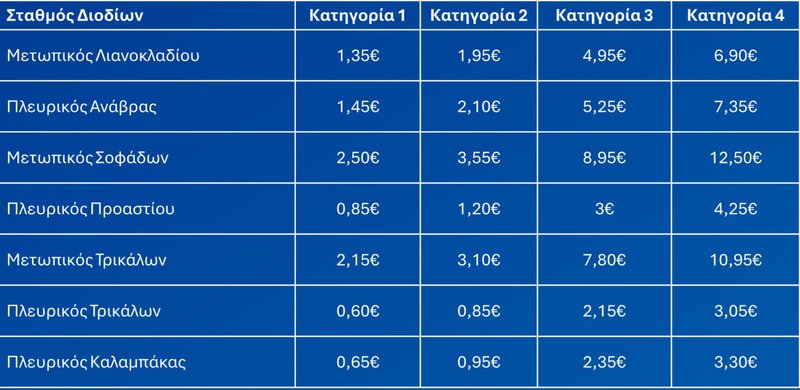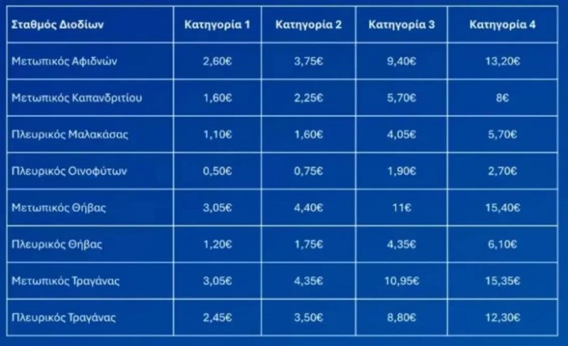 Μόλις πριν από λίγες εβδομάδες ο Αυτοκινητόδρομος Αιγαίου ανακοίνωσε τις νέες τιμές που θα ισχύουν στους σταθμούς διοδίων από την 1η Ιανουαρίου του 2025.
