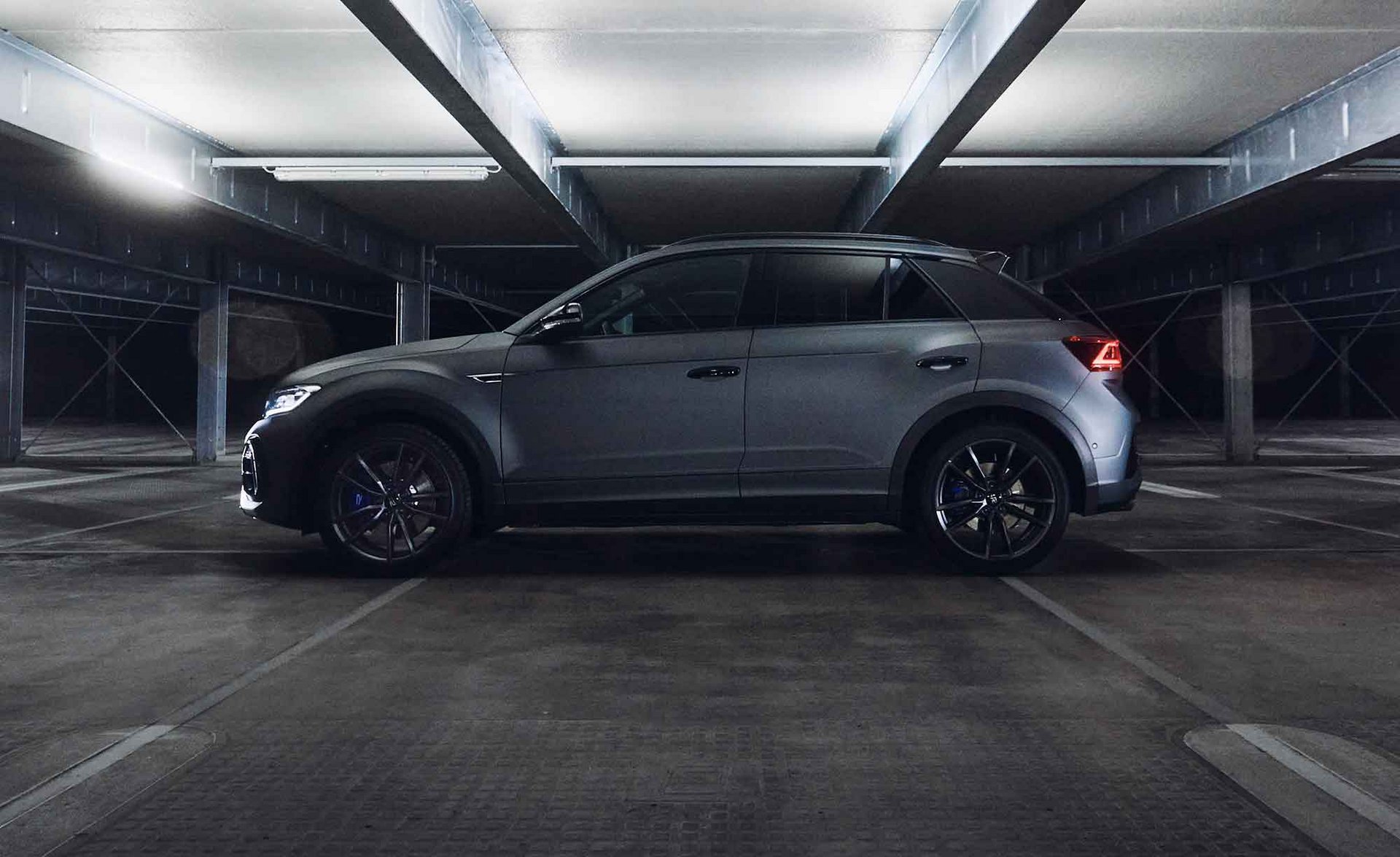 Το T-Roc R Carbon Matte διαθέτει, ακόμα, πακέτο σχεδίασης «Black Style», που περιλαμβάνει καπάκια καθρεπτών και επένδυση παραθύρων σε γυαλιστερό μαύρο χρώμα, όσο και ράγες οροφής σε μαύρο χρώμα.