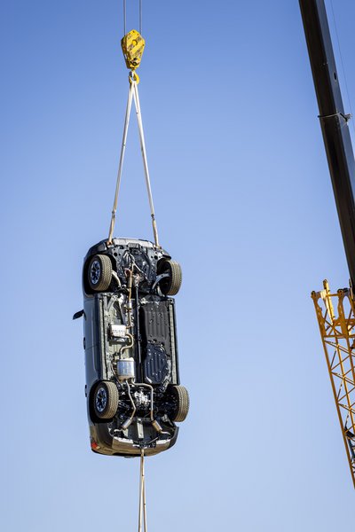 Τι καλύτερος τρόπος λοιπόν για να αποδείξει την αντοχή του από το να κρεμάσει τρία Passport από έναν γερανό σε ύψος 140 ποδιών (περίπου 42 m) δεμένα μάλιστα το ένα μετα το άλλο μεταξύ τους;