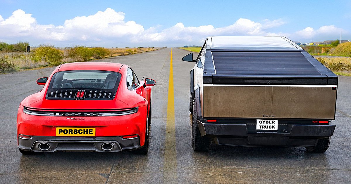 Αυτή τη φορά, στην εκκίνηση στάθηκαν δίπλα-δίπλα η Porsche 911 και το Tesla Cybertruck.