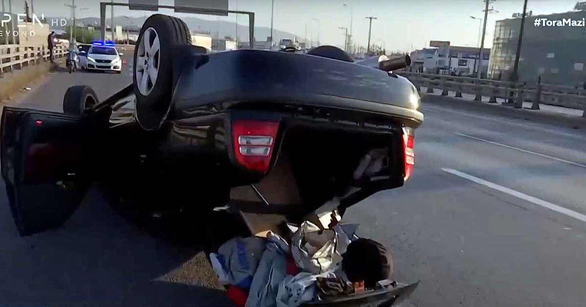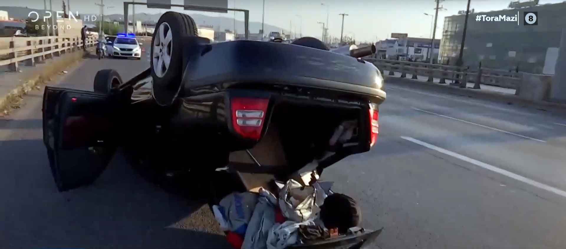 Ευτυχώς ο οδηγός κατάφερε και βγήκε μόνος του από το αυτοκίνητο, σύμφωνα με το ρεπορτάζ που μεταδόθηκε στον τηλεοπτικό σταθμό Open και στη συνέχεια, όντας ελαφρά τραυματισμένος, διεκομίσθη με ασθενοφόρο του ΕΚΑΒ στο πλησιέστερο νοσοκομείο. Με βάση τις πρώτες ενδείξεις, το ΙΧ είναι πολύ πιθανό να προσέκρουσε στο κράσπεδο, με αποτέλεσμα να αναποδογυρίσει.