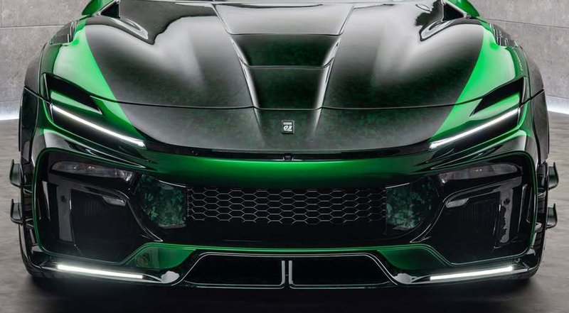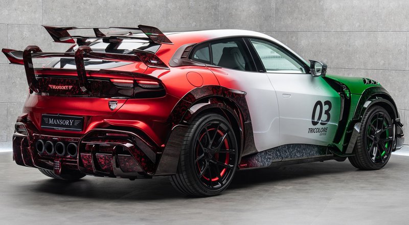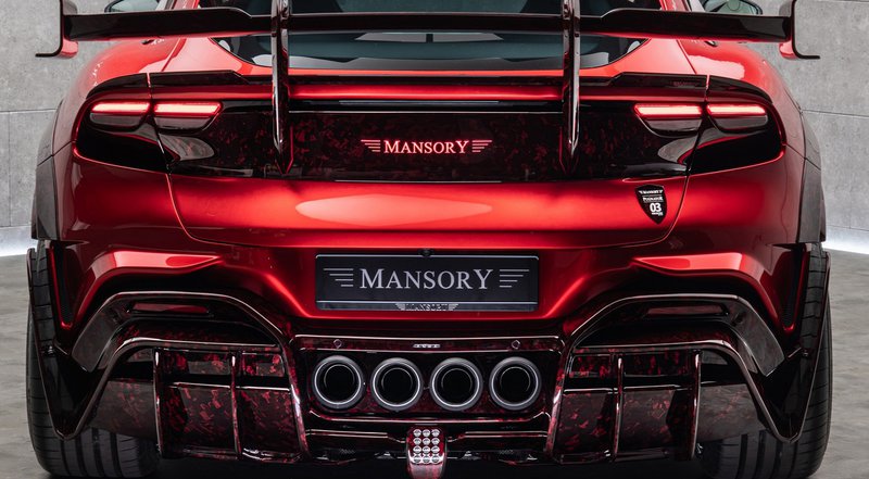 Τα σήματα της Ferrari έχουν αντικατασταθεί από λογότυπα και διακριτικά της Mansory, ενώ έχουν προστεθεί επιπλέον φτερά πάνω από τα ήδη υπάρχοντα, κάνοντας το μοντέλο να μοιάζει ιδιαίτερα επιθετικό.