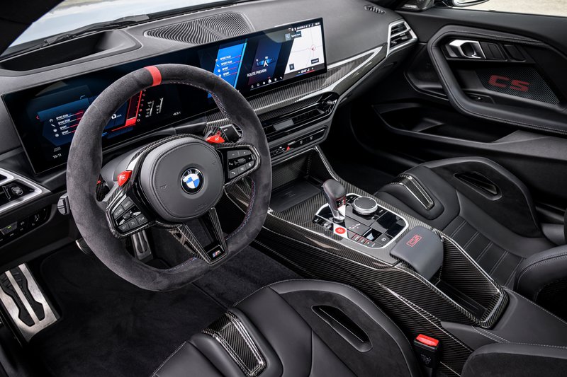 Αντίστοιχα εντυπωσιακό και δυναμικό είναι και το εσωτερικό της M2 CS, το οποίο συνδυάζει την πολυτέλεια με τη σπορ αισθητική, διαθέτοντας καθίσματα M Carbon bucket με επένδυση από Alcantara και δέρμα Merino, ανθρακονημάτινη κεντρική κονσόλα με κόκκινο λογότυπο 'CS', και τιμόνι BMW M ντυμένο με Alcantara.