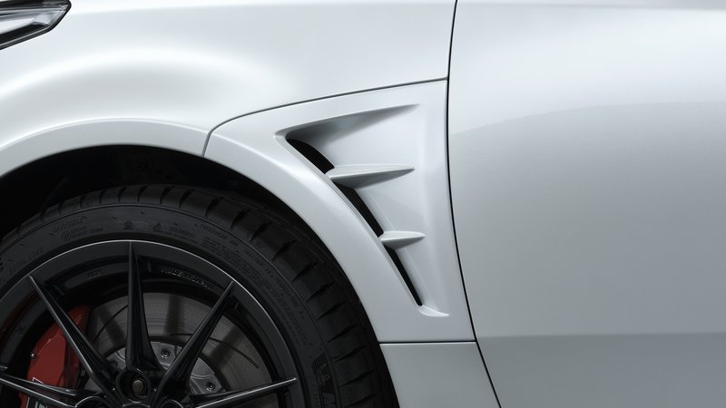 Οι νέοι αγωγοί στα φτερά, που βρίσκονται μεταξύ του μπροστινού τροχού και της πόρτας, απελευθερώνουν αέρα που συσσωρεύεται στον μπροστινό θόλο του τροχού, προς τα πίσω. Αυτό βελτιώνει την αίσθηση του τιμονιού υπό έντονο φρενάρισμα και ενισχύει τη σταθερότητα του χειρισμού στην είσοδο της στροφής.