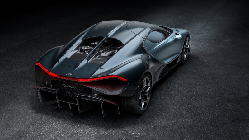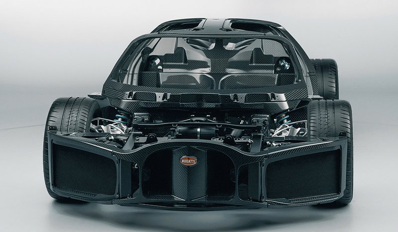 Στο πίσω μέρος, οι διαχύτες αέρα λειτουργούν και ως ζώνες απορρόφησης κρούσεων, εξαλείφοντας την ανάγκη για βαριές μεταλλικές δομές και επιβεβαιώνοντας τον στόχο της Bugatti: καμία γραμμή και σημείο του αυτοκινήτου δεν είναι τυχαίο.