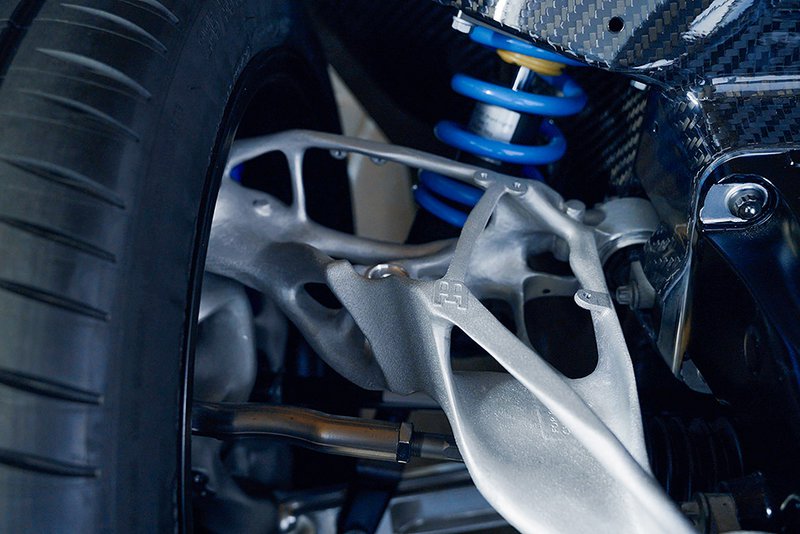 Η ανάρτηση της Tourbillon σχεδιάστηκε και κατασκευάστηκε με τη βοήθεια τεχνητής νοημοσύνης, η οποία ανέπτυξε τη βέλτιστη γεωμετρία, προσφέροντας ιδανική απόδοση με το μικρότερο δυνατό βάρος.