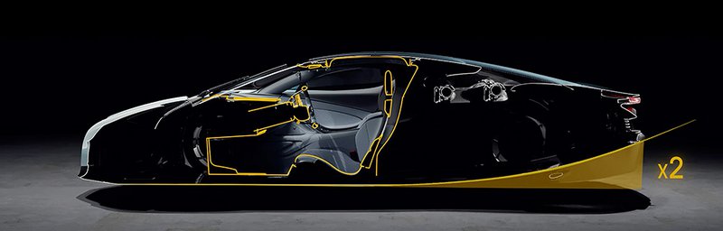 Ανάμεσα στον κινητήρα και τον εμπρός άξονα υπάρχει μόνο η μπαταρία, τοποθετημένη κεντρικά, εξασφαλίζοντας ιδανική ισορροπία.