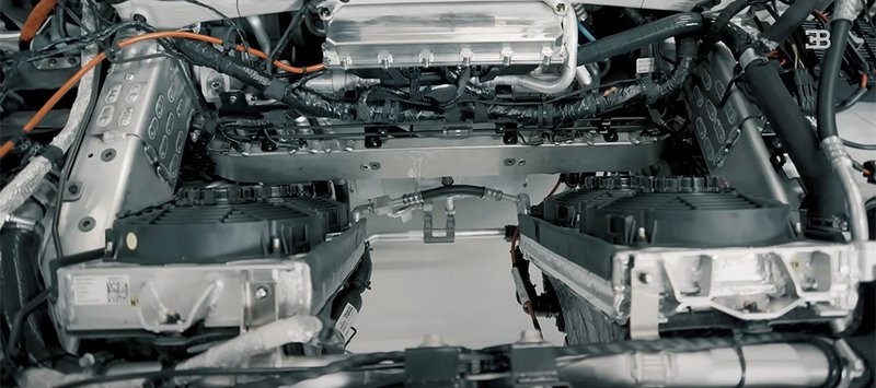 ενώ οι δύο μετατροπείς ισχύος σχεδιάστηκαν ως ενιαία μονάδα με κεντρικό άνοιγμα για να περάσει το σύστημα διεύθυνσης.