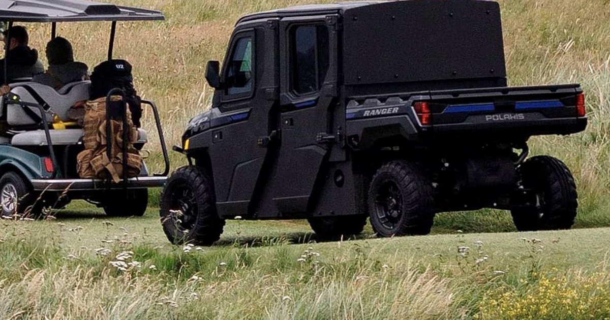 Μόνο που αυτή τη φορά, τα βλέμματα δεν τράβηξε τόσο η παρουσία του ίδιου του Trump στο γήπεδο, όσο ένα ασυνήθιστο όχημα που συνόδευε τη συνοδεία του. Μαύρο, επιβλητικό και θωρακισμένο, το τετράθυρο Polaris Ranger XP 1000 κέρδισε αμέσως το παρατσούκλι 'Golf Force One' από τα αμερικανικά μέσα, σαν να πρόκειται για μια… παρωδία ασφαλείας.
