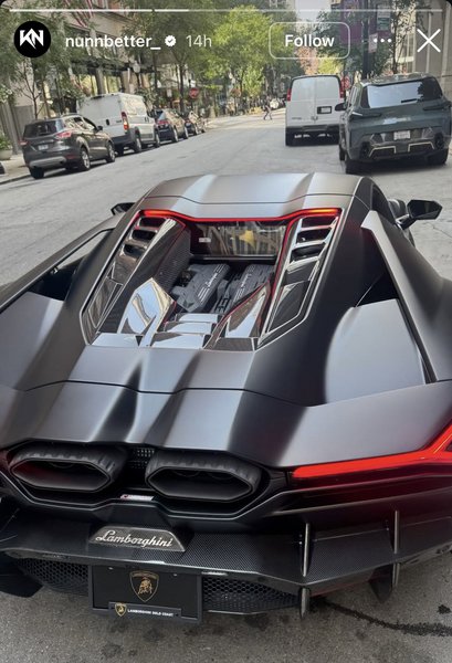 Μετά το πάρτι, ο Ναν δημοσίευσε μια φωτογραφία στο story του προσωπικού του λογαριασμού στο Instagram, στο οποίο πρωταγωνιστεί το νεότερο και ακριβότερο απόκτημα του Αμερικανού μπασκετμπολίστα: μια Lamborghini Revuelto, δηλαδή το πρώτο εξηλεκτρισμένο μοντέλο της ιταλικής αυτοκινητοβιομηχανίας η τιμή του οποίου αγγίζει τις 500.000 ευρώ.