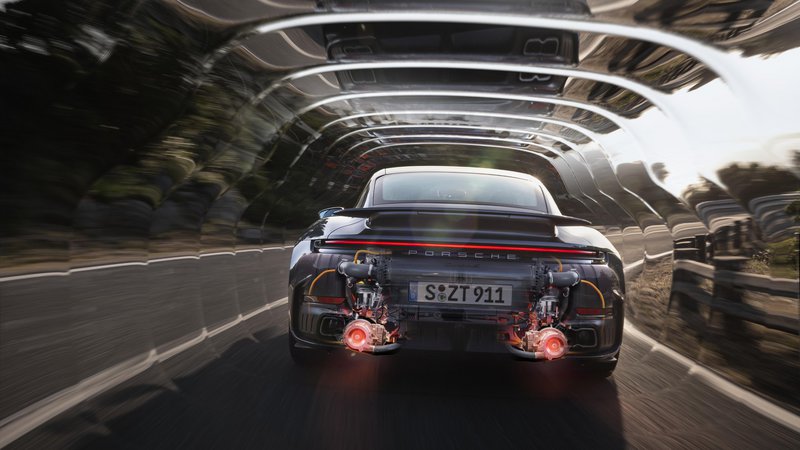 Η «καρδιά» του αυτοκινήτου είναι ο συνδυασμός ενός 3.6 L εξακύλινδρου boxer με το νέο υβριδικό σύστημα “T-Hybrid”. Στο μπροστινό μέρος φιλοξενείται μια μπαταρία 1,9 kWh, ενώ ένας ηλεκτροκινητήρας παρεμβάλλεται ανάμεσα στον κινητήρα και το οκτατάχυτο PDK κιβώτιο. Το αποτέλεσμα είναι ένας συνδυασμός ακαριαίας απόκρισης και εξαιρετικής εκμετάλλευσης ενέργειας, αφού οι τουρμπίνες όχι μόνο φουσκώνουν άμεσα, αλλά και ανακτούν ενέργεια που παλαιότερα χανόταν.