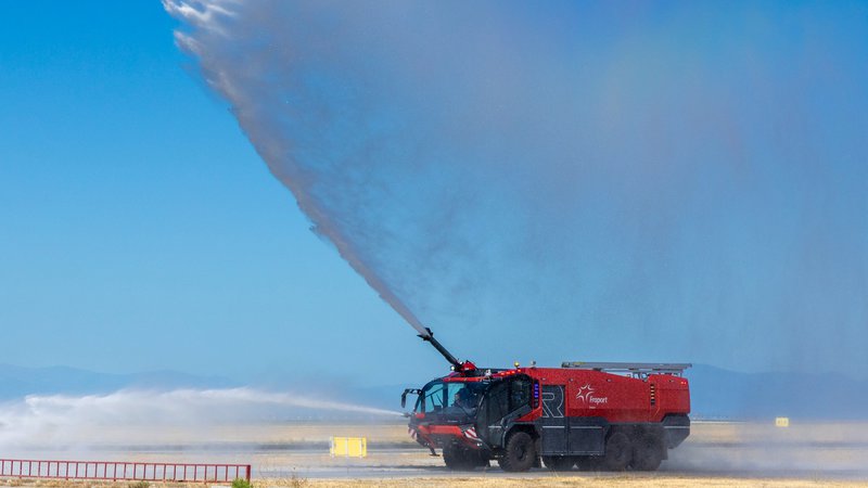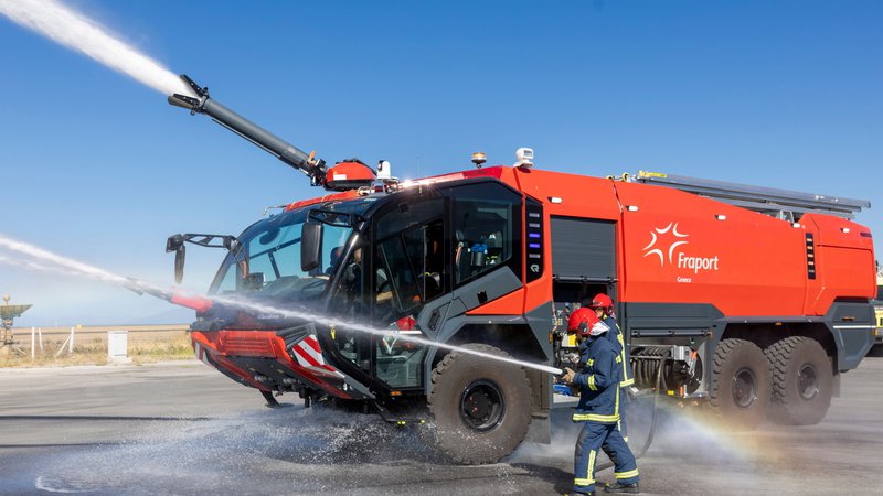 Η Fraport Greece προχώρησε πρόσφατα σε ενίσχυση του στόλου της με την προσθήκη 16 νέων πυροσβεστικών οχημάτων Rosenbauer 6X6 τύπου Buffalo και ενός τύπου Panther, τα οποία διατίθενται πλέον στα περιφερειακά αεροδρόμια που διαχειρίζεται η εταιρεία.