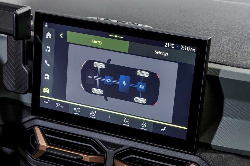 Και αφού δεν έφτανε αυτό, το έκαναν και τετρακίνητο με έναν ηλεκτροκινητήρα 31 PS και 87 Nm στον πίσω άξονα και ένα κιβώτιο 2 σχέσεων στον ηλεκτροκινητήρα για ταχύτητες μέχρι 70 km/h για κίνηση σε off road τερέν με την πρώτη σχέση ή 140 km/h για σκέτη κίνηση σε ανοιχτό δρόμο με τη δεύτερη. Σαφές προβάδισμα της ηλεκτρικής τετρακίνησης καθώς δεν υπάρχουν διαφορικά να καταπονούνται σε δύσκολο τερέν. Αμφότερα τα συστήματα φροντίζουν να φορτίζουν μια αερόψυκτη μπαταρία ιόντων λιθίου 0,8 kWh η οποία αναλαμβάνει τα της ηλεκτροκίνησης με τους δύο ηλεκτροκινητήρες με αποτέλεσμα τα Duster και Bigster να είναι σε θέση να κινηθούν ως προσθιοκίνητα, ως τετρακίνητα αλλά και αμιγώς ηλεκτρικά ως….πισωκίνητα για μικρές αποστάσεις.