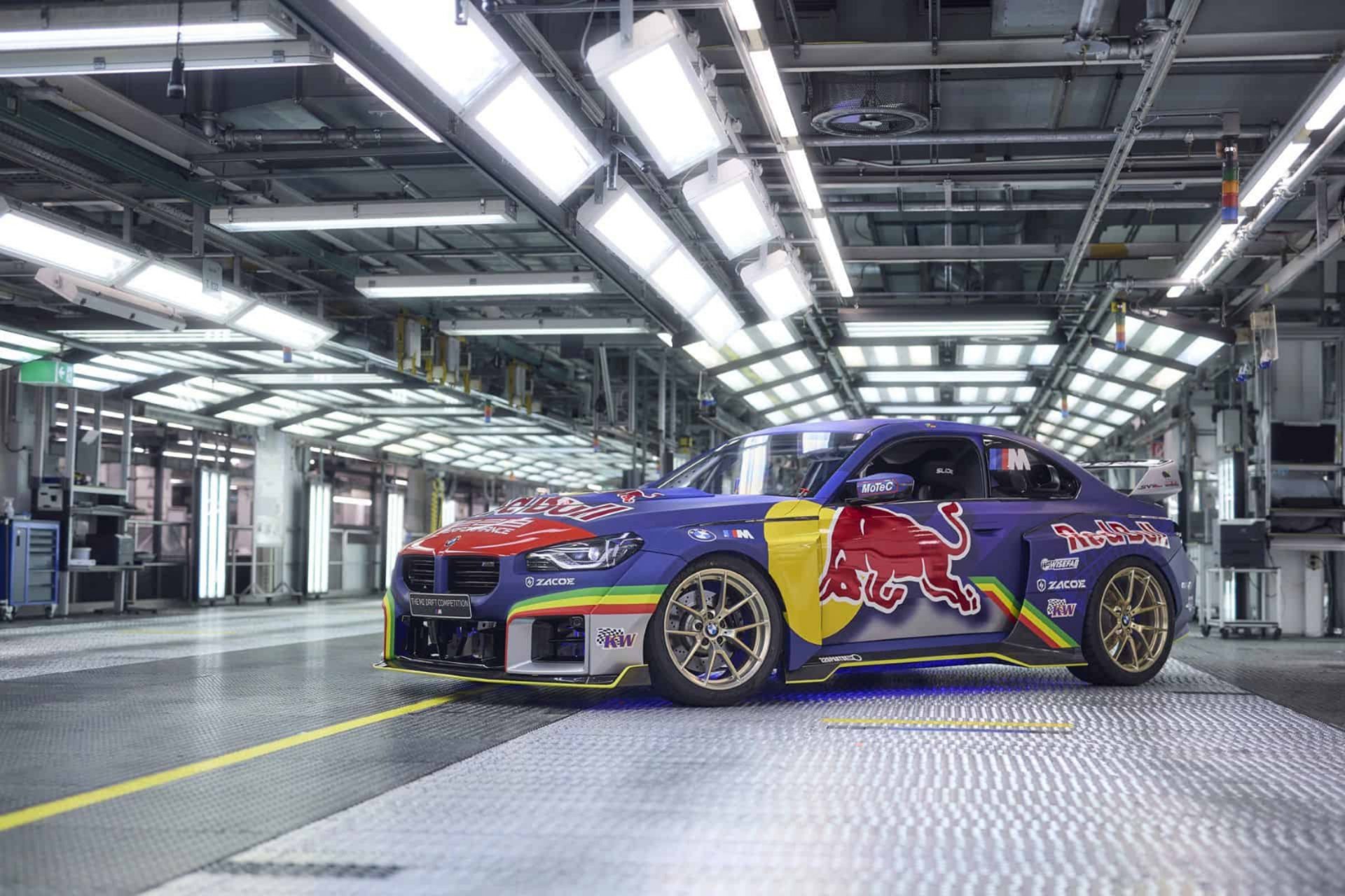 Ο Elias Hountondji, μέλος των Red Bull Driftbrothers, πέρασε με το 1.100 PS BMW M2 Drift Competition ανάμεσα από ρομποτικούς βραχίονες, γραμμές συναρμολόγησης και εργαλεία που λειτουργούσαν κανονικά, σαν να μην υπήρχε τίποτα παράξενο στη θέα ενός αγωνιστικού να σέρνει το πίσω μέρος του σε πλήρη πλαγιολίσθηση. Η σκηνή ήταν οργανωμένη με ακρίβεια χιλιοστού.