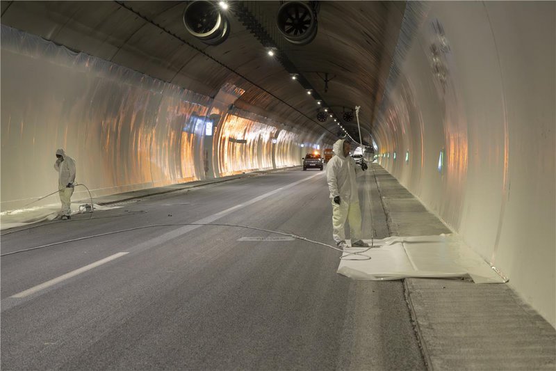 Στο πλαίσιο του ίδιου έργου επαναχρωματίστηκε το εσωτερικό των σηράγγων με ένα καινοτόμο, υψηλής ανακλαστικότητας, φωτοκαταλυτικό χρώμα (Vitex FOS). Το συγκεκριμένο χρώμα ενισχύει τη διάχυση του φωτός στις σήραγγες, μειώνει την επικάθηση ρύπων διοξειδίων του αζώτου (ΝΟχ) στους κλειστούς χώρους κυκλοφορίας οχημάτων και συντελεί στη διάσπαση των συγκεκριμένων αέριων ρύπων. Πρόκειται για την πρώτη εφαρμογή τέτοιας έκτασης στην Ελλάδα, καθώς καλύφθηκαν με το καινοτόμο υλικό πάνω από 125.000 τ.μ.