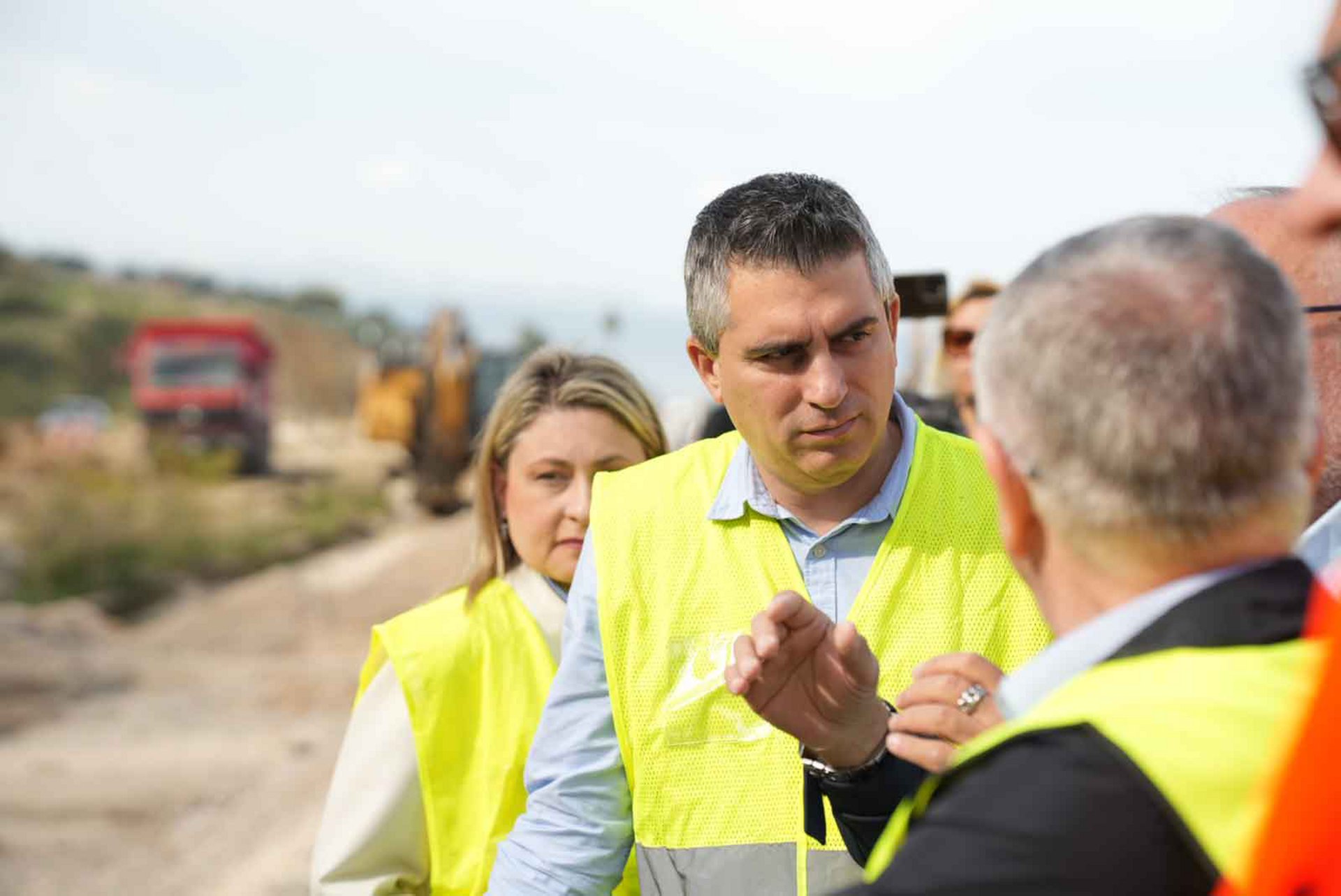 Στη συνέχεια, ο κ. Δήμας, μαζί με τον κ. Ταχιάο και τον κ. Αναγνώπουλο επισκέφθηκαν και το εργοτάξιο κατασκευής του οδικού άξονα Καλαμάτα - Ριζόμυλος - Πύλος - Μεθώνη.