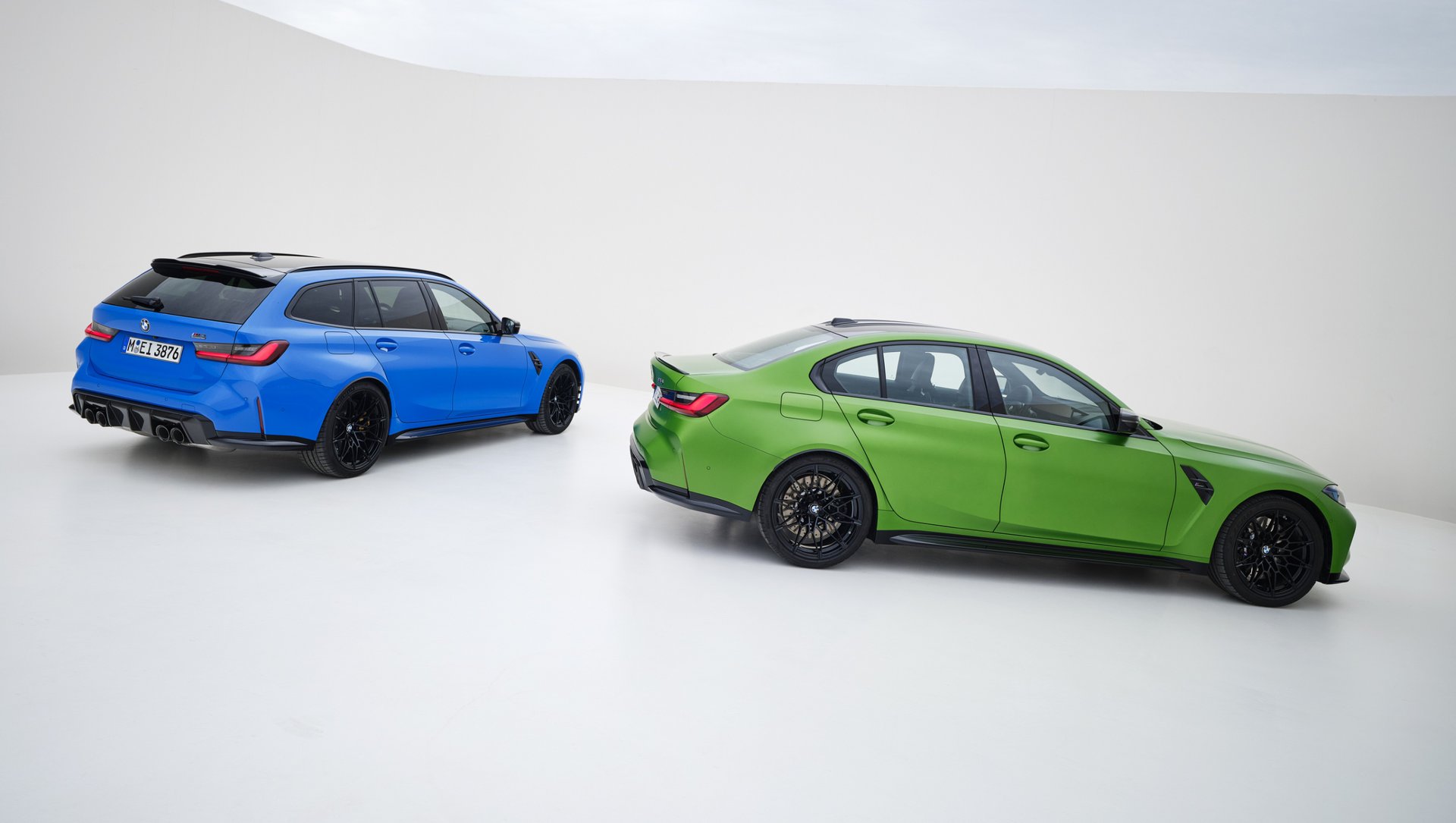Η M3, από την άλλη, παραμένει πιστή στη χαρακτηριστική κάθετη διπλή μάσκα της γενιάς G80, που έχει ήδη προκαλέσει συζητήσεις. Το σύνολο δείχνει δυναμικό χωρίς να φτάνει στα άκρα του Audi. Στο πλάι, το RS 5 προβάλλει έντονα φουσκωμένους θόλους και στάνταρ ζάντες 21 ιντσών, ενώ η M3 διατηρεί τη γνωστή διάταξη 19 ιντσών εμπρός και 20 πίσω.