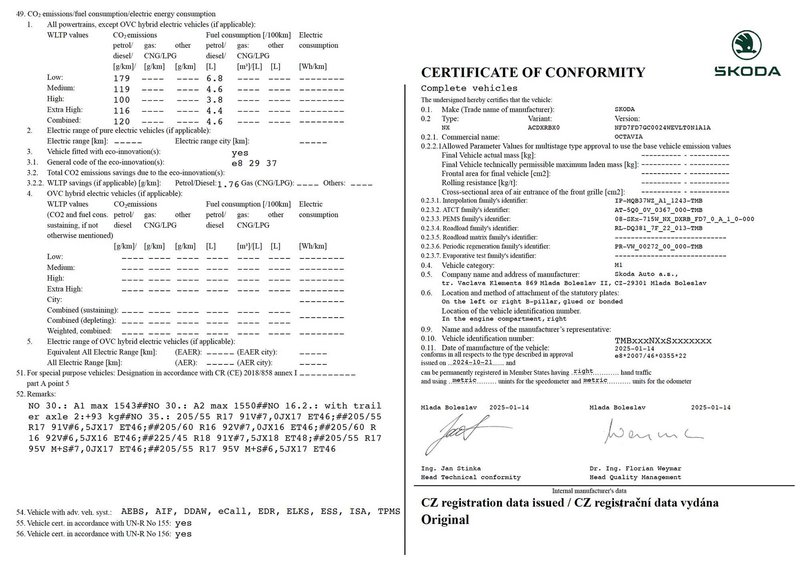 Ο αριθμός τους ποικίλλει ανάλογα με τον τύπο του συστήματος μετάδοσης κίνησης (βενζίνη/diesel, plug-in hybrid, BEV), το επίπεδο των συστημάτων υποβοήθησης οδηγού και τα χαρακτηριστικά ασφαλείας που χρησιμοποιούνται. Στην περίπτωση της Skoda, ολόκληρη η διαδικασία έγκρισης πραγματοποιείται σε συνεργασία με μια ανεξάρτητη τεχνική υπηρεσία (όπως η TÜV SÜD ή η DEKRA), η οποία είναι εξουσιοδοτημένη από την αρχή έγκρισης.