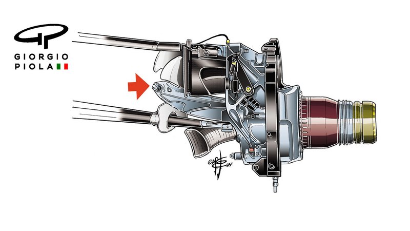 Το Shark Fin, το τεράστιο κάθετο πτερύγιο αντικαθίσταται φέτος από μικρότερο αεροδυναμικό βοήθημα (επάνω). Τη φετινή του μορφή τη δοκίμασε πρώτη η Sauber στο Austin πέρυσι τον Οκτώβριο και τελικά υιοθετήθηκε από όλες τις ομάδες. Μαζί με το Shark Fin καταργούνται και τα T-Wings τα οριζόντια αεροδυναμικά στοιχεία (κάτω).