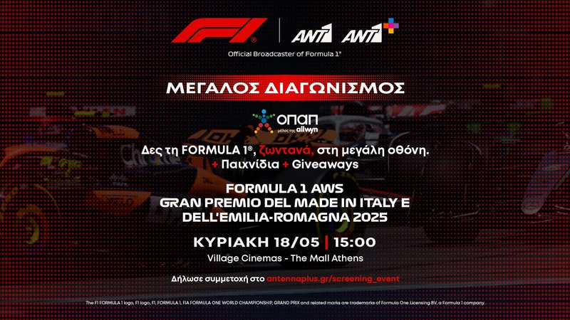 Το ΑΝΤ1 και το ΑΝΤ1+, επίσημοι αναμεταδότες του Παγκοσμίου Πρωταθλήματος Formula 1 στην Ελλάδα, φέρνουν το μηχανοκίνητο σπορ πιο κοντά από ποτέ. Μέσα από τη streaming πλατφόρμα του ΑΝΤ1+, μεταδίδονται αποκλειστικά και ζωντανά όλα τα Grand Prix, οι ελεύθερες και κατατακτήριες δοκιμές, χωρίς διακοπές για διαφημίσεις. Επιπλέον, τα πρωταθλήματα F1, F2 και F3 είναι διαθέσιμα live και on demand, μαζί με πλούσιο αρχειακό υλικό και αποκλειστικό περιεχόμενο για τους λάτρεις της ταχύτητας.