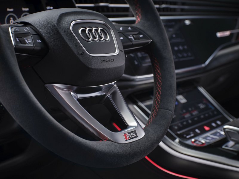 Το προαιρετικά διαθέσιμο πακέτο RS Dynamic Plus για το RS Q8 SUV προσφέρει ακόμα υψηλότερη απόδοση, με αύξηση της τελικής ταχύτητας στα 305 km/h, ηλεκτρομηχανικά ελεγχόμενη αντιστρεπτική ράβδο, quattro με σπορ διαφορικό και κεραμικά φρένα RS (στάνταρ στο RS Q8 SUV performance). Το στάνταρ σύστημα ενεργής τετραδιεύθυνσης συμβάλλει στην ευελιξία και την κατευθυντικότητα. Κατά τη γρήγορη αλλαγή λωρίδων, οι πίσω τροχοί στρίβουν έως και 1,5 μοίρες προς την κατεύθυνση των μπροστινών τροχών. Σε χαμηλές ταχύτητες, στρίβουν έως και 5 μοίρες προς την αντίθετη κατεύθυνση από εκείνη των μπροστινών τροχών. Αυτό μειώνει αντίστοιχα τον κύκλο στροφής διευκολύνοντας τους ελιγμούς