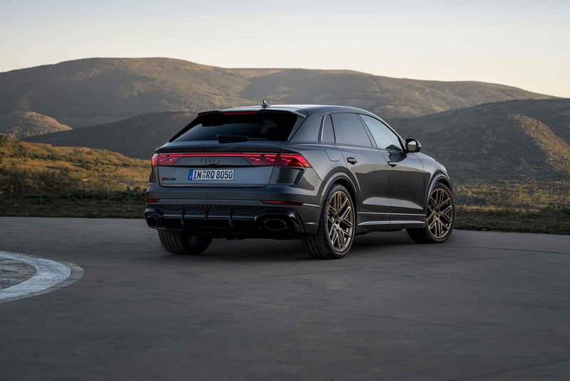 Με τα νέα Audi RS Q8 SUV και RS Q8 SUV performance, η Audi Sport GmbH δίνει μεγαλύτερη έμφαση στα δυναμικά χαρακτηριστικά των δύο SUV υψηλών επιδόσεων. Μια νέα μπροστινή ποδιά με εντυπωσιακές εισαγωγές αέρα, η χαρακτηριστική κυψελοειδής σχεδίαση και στοιχεία σε γυαλιστερό μαύρο χρώμα ή ματ γκρι, προσδιορίζουν σαφώς τα νέα RS Q8 SUV και RS Q8 SUV performance ως τα κορυφαία μοντέλα στη γκάμα του Audi Q8. Η μεγάλη μάσκα Singleframe διαθέτει επανασχεδιασμένη κυψελοειδή δομή, όπου κάθε μεμονωμένη κυψέλη είναι πλέον τρισδιάστατη. Στο πίσω μέρος, οι δύο οβάλ απολήξεις εξάτμισης ορίζουν την ταυτότητα των μοντέλων RS. Η Audi Sport GmbH έχει τοποθετήσει έναν διαχύτη ανάμεσά τους, ο οποίος χωρίζεται σε δύο τμήματα.