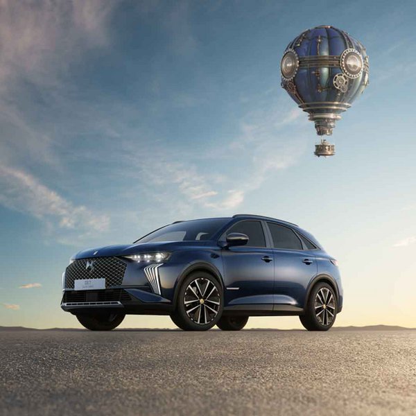 Από την άλλη πλευρά, το DS 7 Jules Verne, σε μπλε αμάξωμα Sapphire Blue, εμπνέεται από το μυθιστόρημα «Πέντε εβδομάδες με αερόστατο». Για να υπογραμμίσει τη μοναδικότητά του, το μοντέλο φέρει στο εμπρός μέρος ένα αποκλειστικό σήμα από βουρτσισμένο χρώμιο, το οποίο απεικονίζει την υπογραφή του συγγραφέα στο κέντρο μιας πυξίδας. Στο πλάι του αμαξώματος, αποτυπώνονται «γκιγιοσέ» (guilloche) μοτίβα σε σατινέ χρώμιο που συμβολίζουν αστερισμούς, συνοδευόμενα επίσης από την υπογραφή του Βερν. Οι ζάντες 19 ιντσών ολοκληρώνουν το εξωτερικό σύνολο, με χρυσό κεντρικό κάλυμμα.