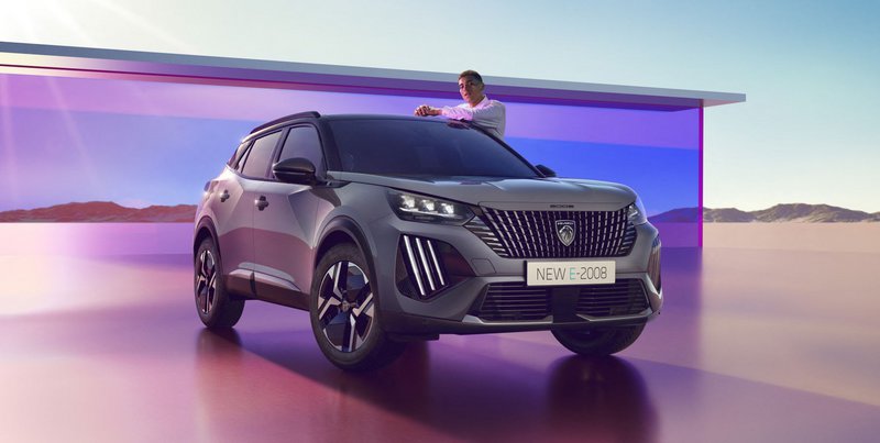 Τέλος, το αμιγώς ηλεκτρικό E-2008 έχει ηλεκτροκινητήρα 156 PS και 260 Nm και μπαταρία ενεργειακής χωρητικότητας 54 kWh (51 kWh ωφέλιμη), που εξασφαλίζει αυτονομία 399-406 km στο συνδυασμένο κύκλο και 552-568 km εντός πόλης. Η φόρτιση σε ταχυφορτιστή 100 kW για πλήρωση από το 20% στο 80% γίνεται σε 27 λεπτά και σε 3 ώρες και 10 λεπτά σε φορτιστή 11 kW με OBC 11kW. Τα 0-100 km/h έρχονται σε 9,1 sec ενώ η τελική ταχύτητα είναι 150 km/h.